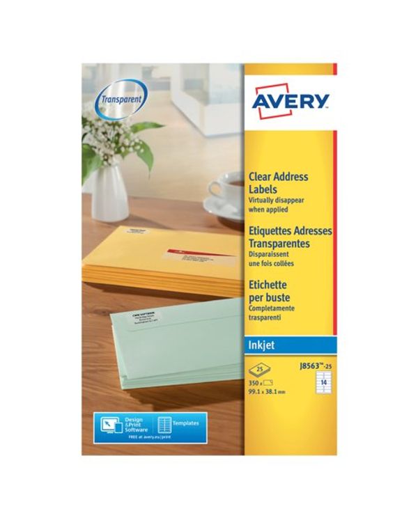 Avery Inkjet Address Labels 14 Per Sheet Clear (Pack of 350) J8563-25