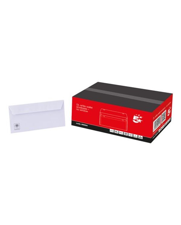 5 Star Office Envelopes Wallet Peel and Seal 100gsm DL 220x110mm White (Pack of 500)
