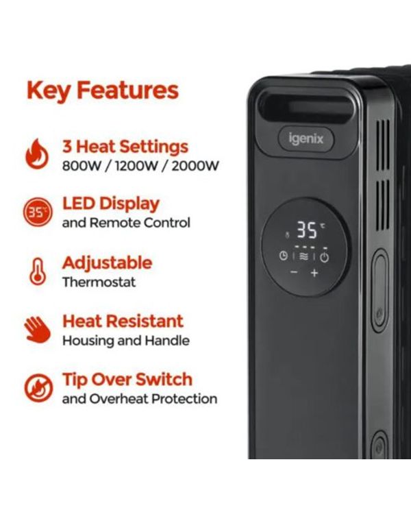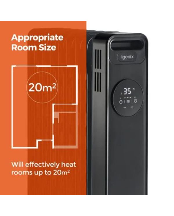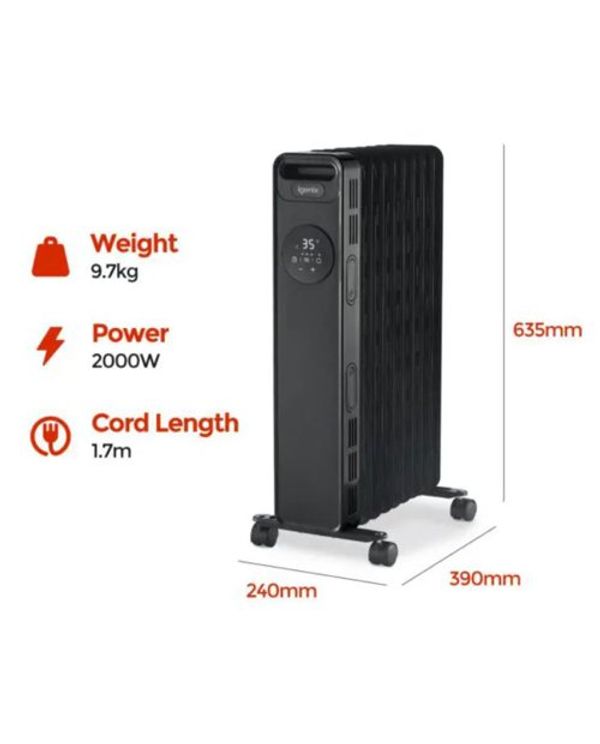 Igenix 2000W Digital Oil Filled Radiator with Timer Black IG2621BL