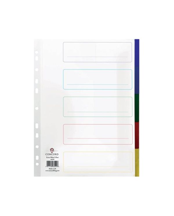 Concord 5-Part Extra Wide Index Polypropylene Multicoloured A4 66099