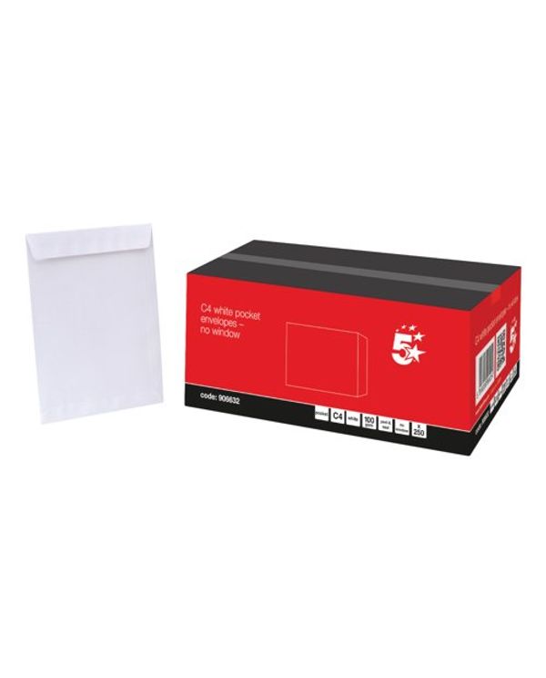 5 Star C4 Pocket Envelope Peel and Seal 100gsm 324x229mm White (Pack of 250) 906632