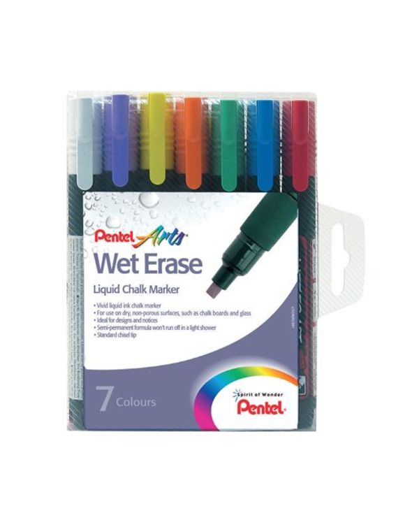 Pentel Liquid Chalk Marker Chisel Tip Assorted (Pack of 7) SMW26/7