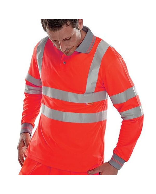 Beeswift Hi Visibility Long Sleeve Polo Shirt Red Small BPKSLSENRES