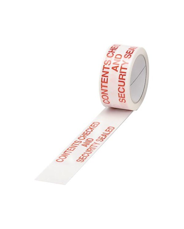 Polypropylene Tape Printed Contents Checked 50mmx66m (Pack of 6)White Red PPPS-SECURITY