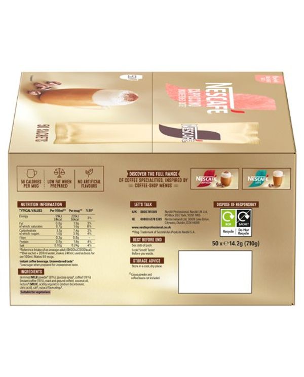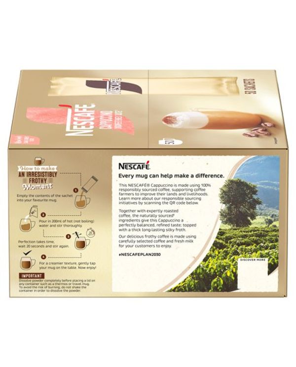 Nescafe Gold Cappuccino Unsweetened Instant Coffee Sachets (Pack of 50) 12582308