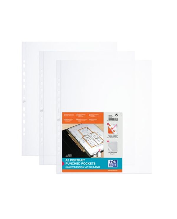 Oxford Punched Pocket A3 Portrait Polypropylene Clear 4x25 (Pack of 100) 400005480