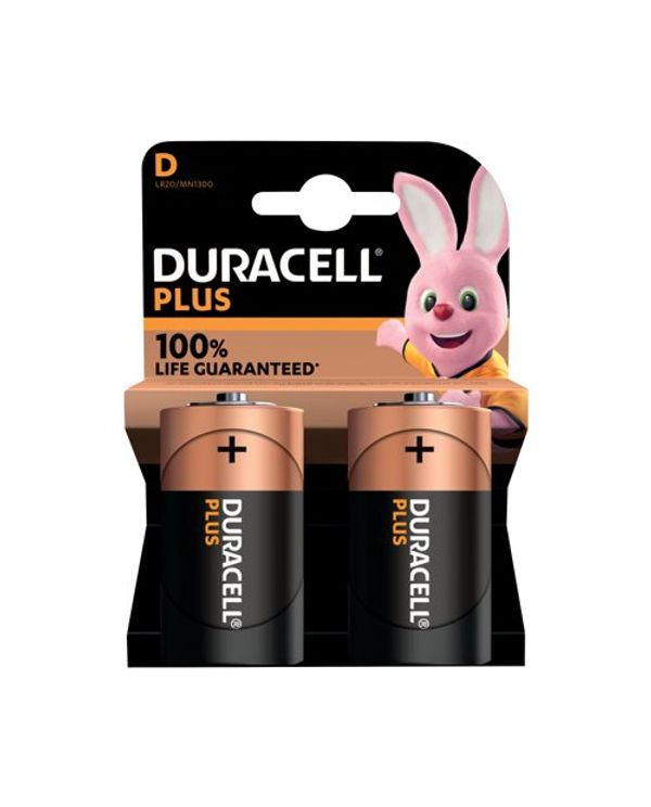 Duracell Plus D Battery Alkaline 100% Life (Pack of 2) 5009816