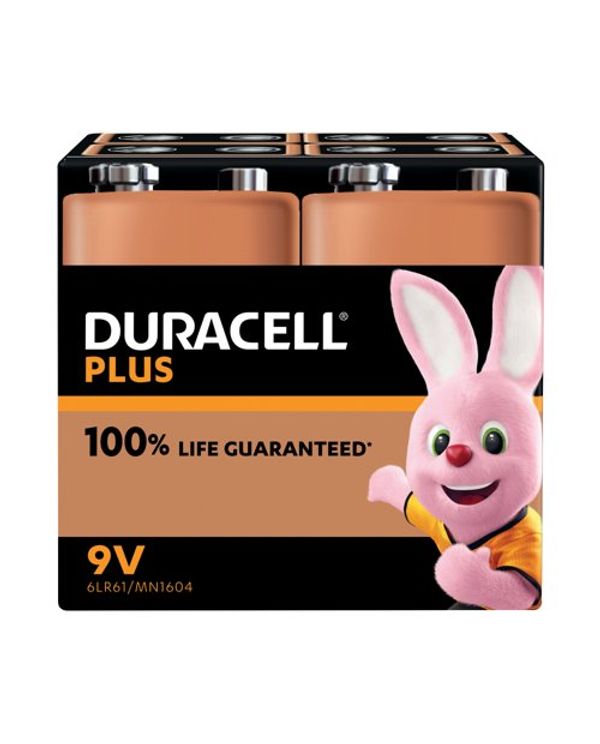 Duracell Plus 9V Battery Alkaline 100% Life (Pack of 4) 5009826