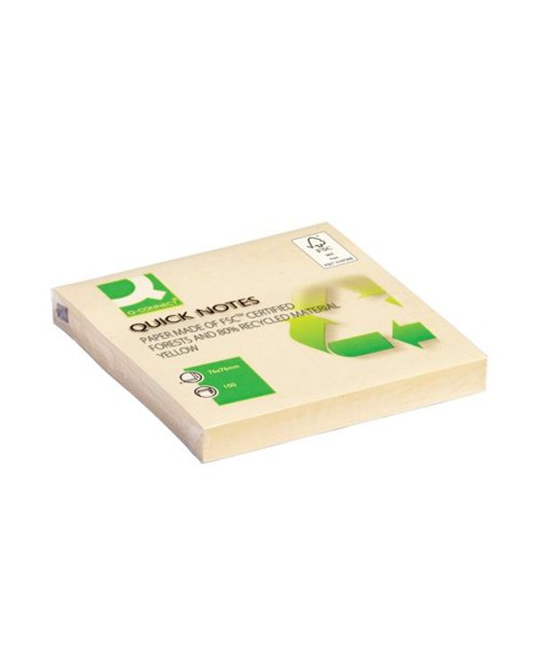 Q-Connect Quick Notes Recycled 76x76mm Yellow (Pack of 12) KF05609