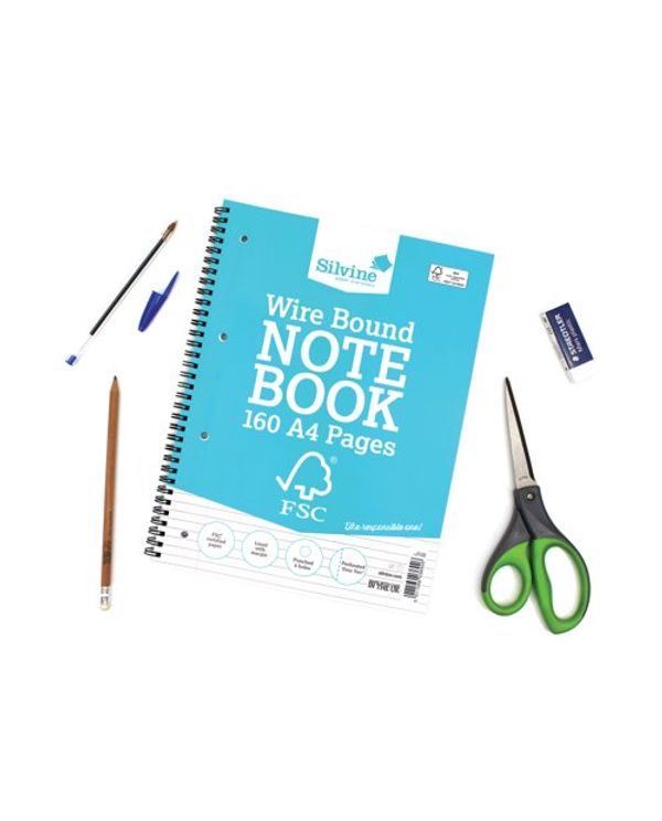 Silvine Envrionmentally Friendly Wirebound Notebook 160 Pages A4 (5 Pack) FSCTW80