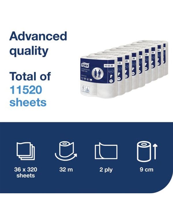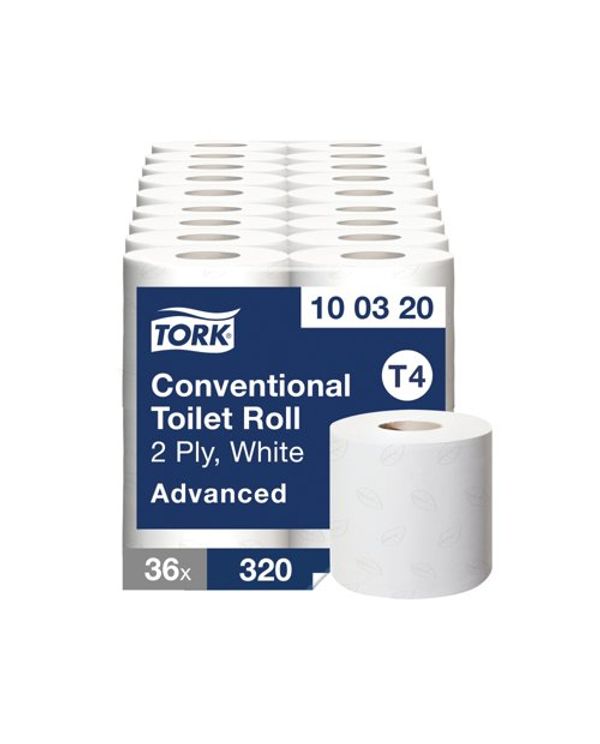 Tork T4 Conventional Toilet Paper Roll Advanced 2-Ply White 320 Sheets (Pack of 36) 100320
