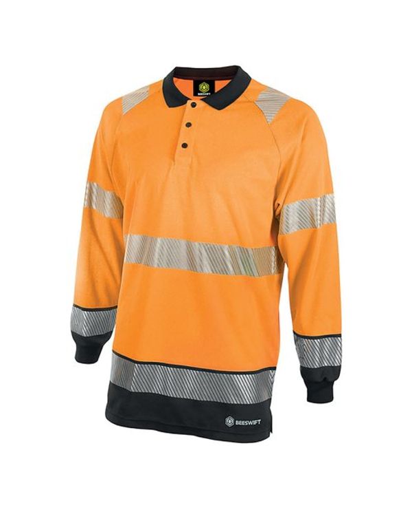 Beeswift High Visibility Two Tone Long Sleeve Polo Shirt Orange/Black 3XL HVTT015ORBL3XL
