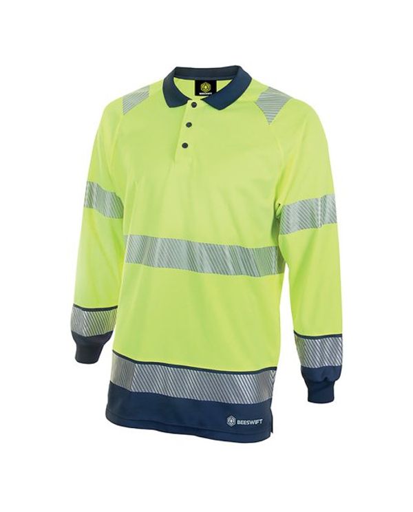 Beeswift High Visibility Two Tone Long Sleeve Polo Shirt Saturn Yellow/Navy Blue S HVTT015SYNS