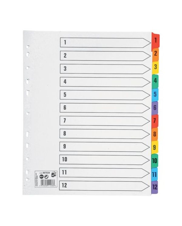 5 Star Office Maxi Index 1-12 Multipunched Mylar-reinforced Multicolour Tabs Extra Wide A4+ White