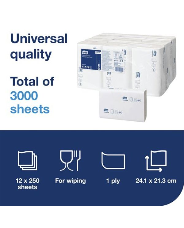 Tork Xpress Universal Multifold Hand Towel H2 1-Ply White 250 Sheets (Pack of 12) 471074