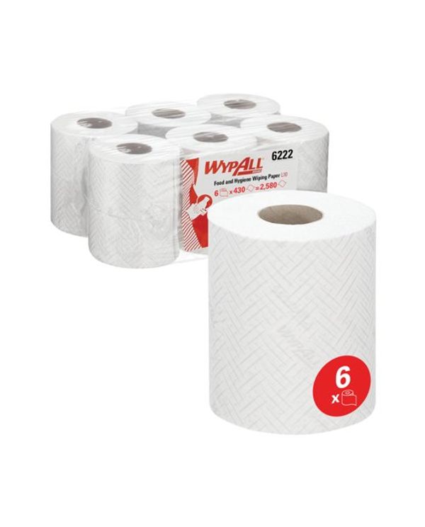 WypAll L10 Food and Hygiene Centrefeed Paper Rolls 1 Ply White (Pack of 6) 6222