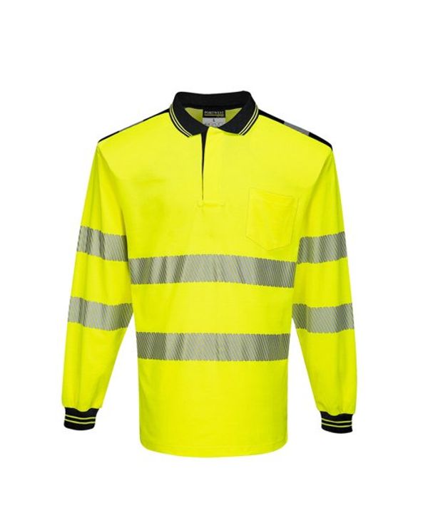 Portwest PW3 Hi Vis Cotton Comfort Polo Shirt L/S 2XL Yellow/Blk