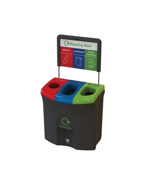 Meridian Recycling Bin Triple Mixed Plastics Cardboard Mixed Recycling 87L Blk/Grn/Wht 81893/16/G2
