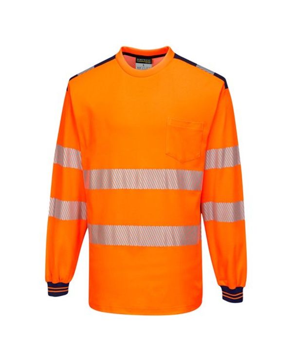 Portwest PW3 Hi Vis Cotton Comfort T-Shirt L/S XL Orange/Navy
