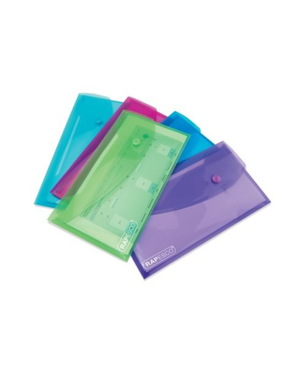 Rapesco Eco Recycled Popper Wallet DL Assorted Bright Transparent (Pack of 5) 0690