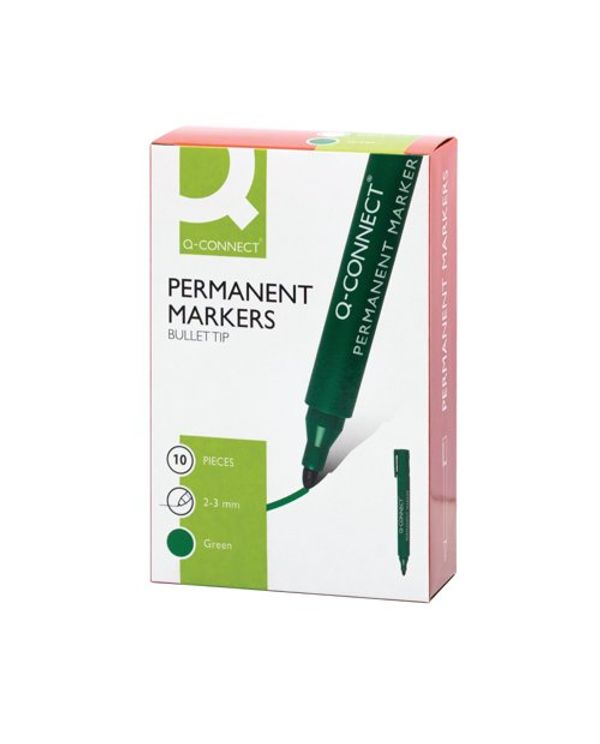 Q-Connect Permanent Marker Pen Bullet Tip Green (Pack of 10) KF01773