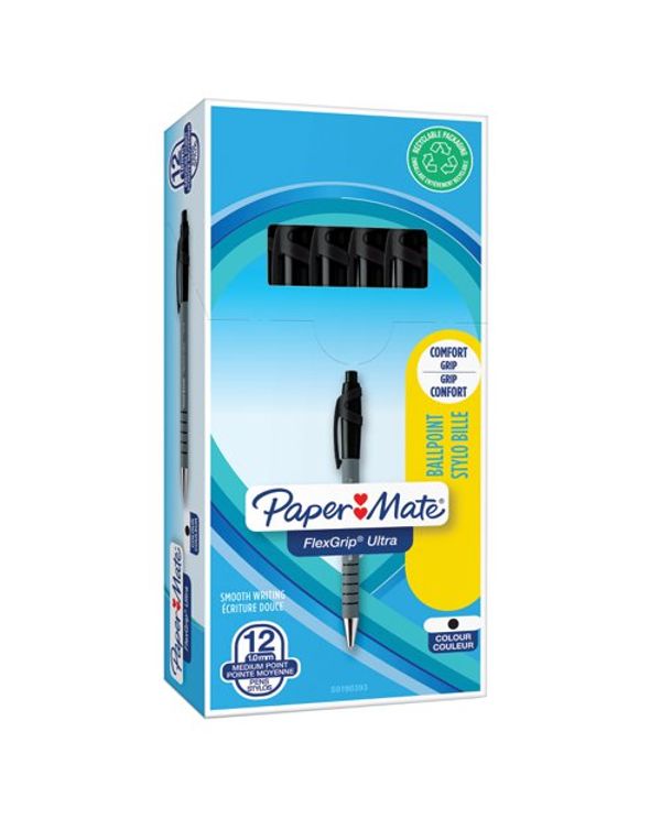 PaperMate Flexgrip Ultra Retractable Ballpoint Pen Medium Black (Pack of 12) S0190393