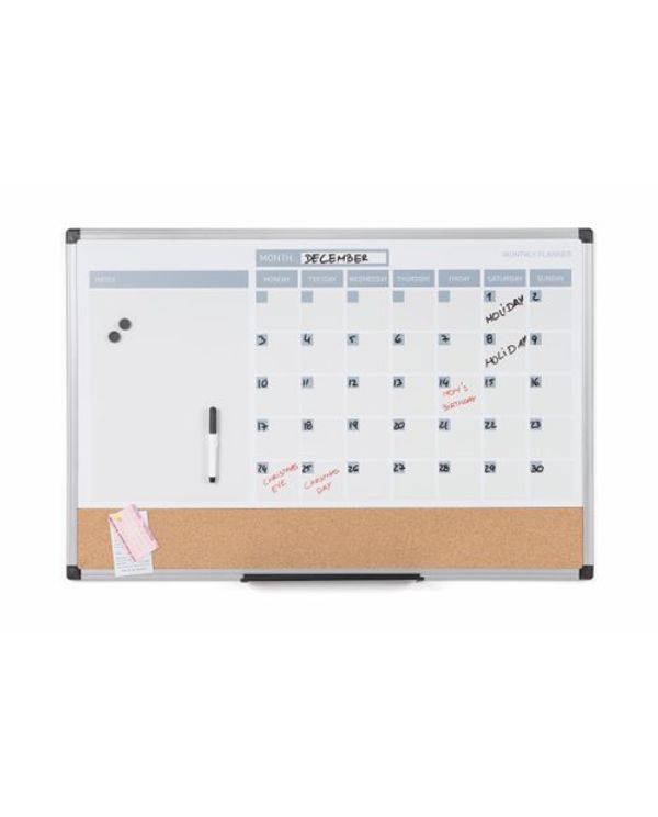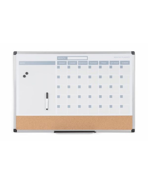 Bi-Office Maya 3-In-1 Magnetic Month Planner Lacquered Steel/Cork 90x60cm MB0707186P