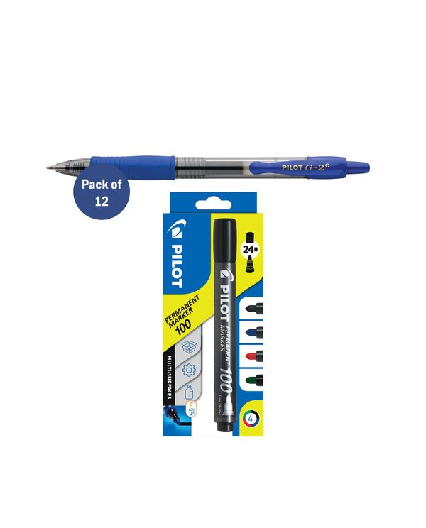 Pilot G-2 Gel Ink Rollerball Pen Medium Blue Pack of 12 FOC x4 Pilot Assorted Markers