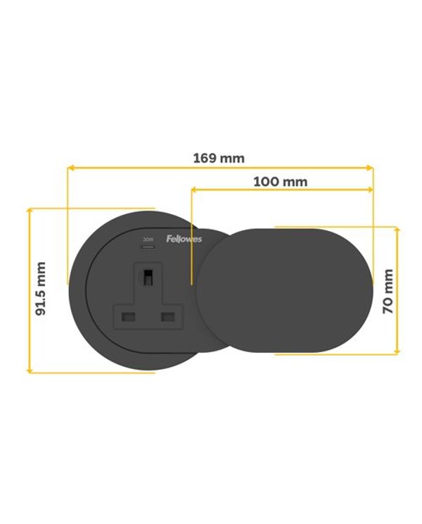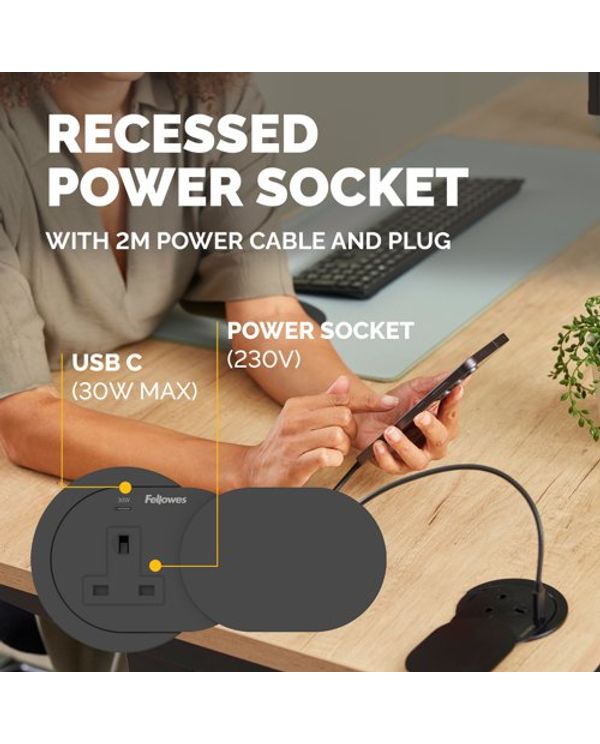 Fellowes Power Spot Type G UK/IE 1 Socket and 1 USB C Port Black 100136977