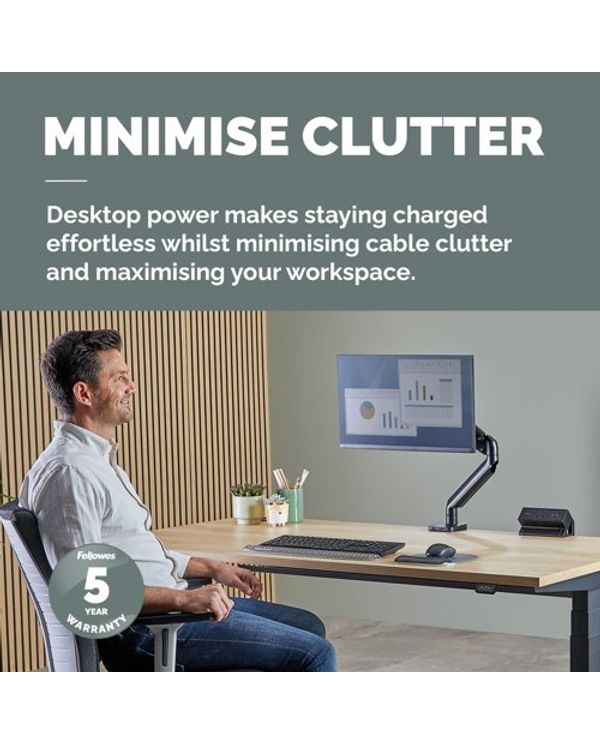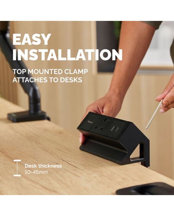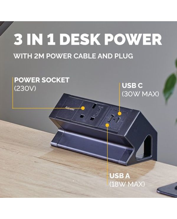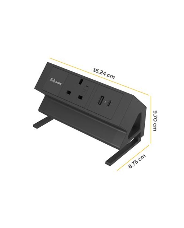 Fellowes Power Desk Type G UK/IE 1 Socket 1 USB-A + 1 USB-C Port Black 100136980