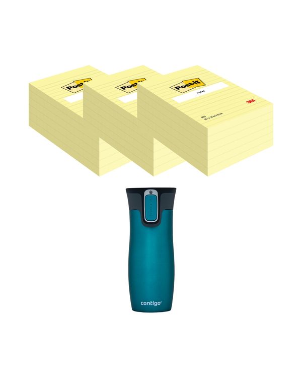 Post-It Notes XXL 101x152mm Lined Yellow 3x6 Pads (Pack of 18) + FOC Contigo Travel Mug