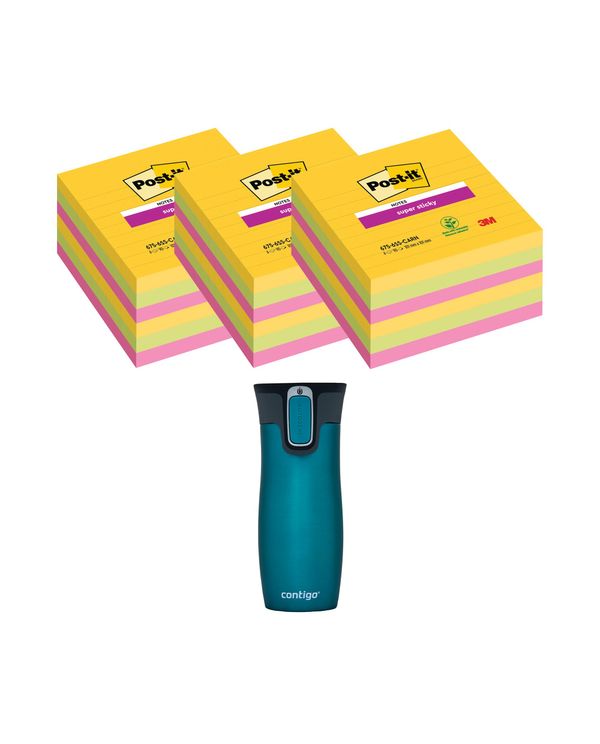 Post-It Super Sticky XL 101x101mm Lined Rio 3x6 Pads (Pack of 18) + FOC Contigo Travel Mug