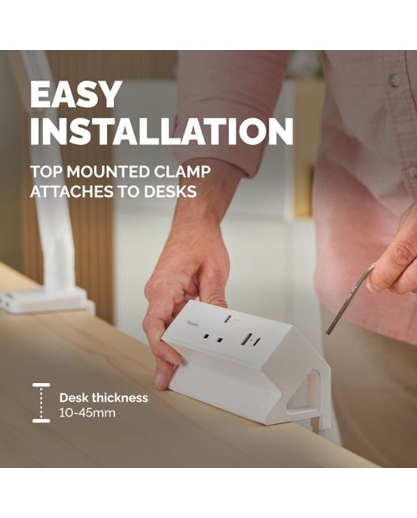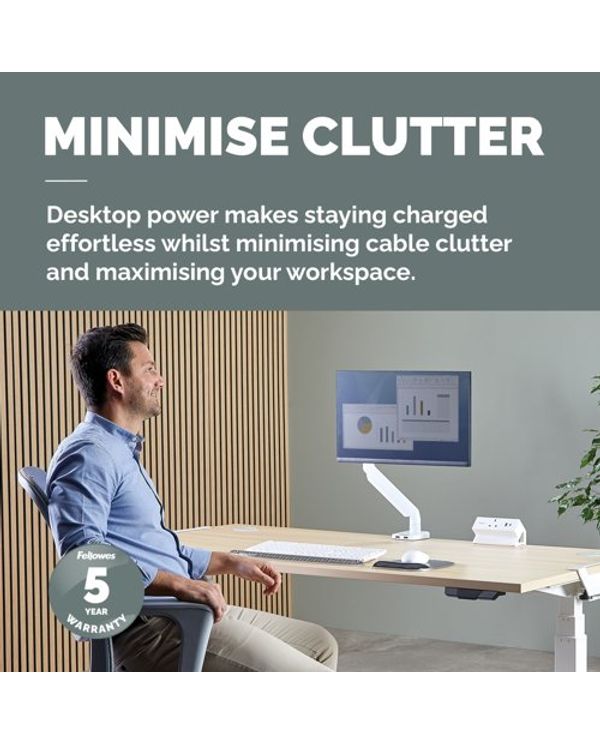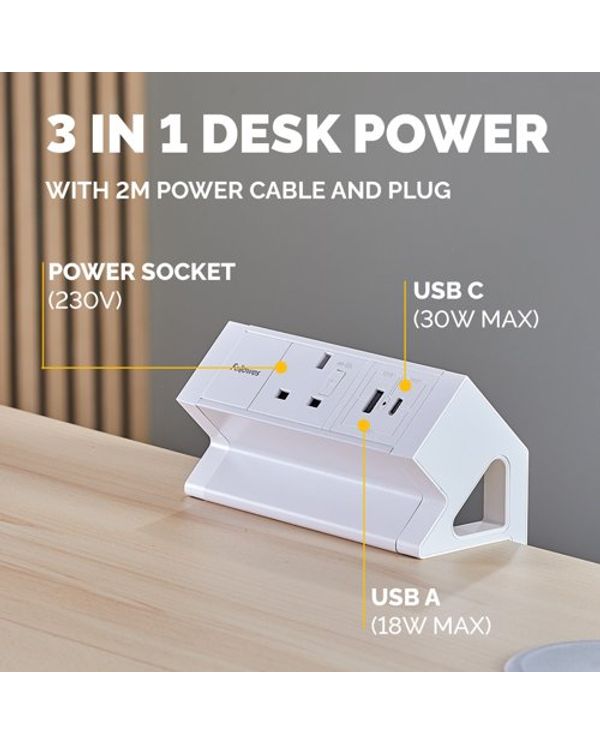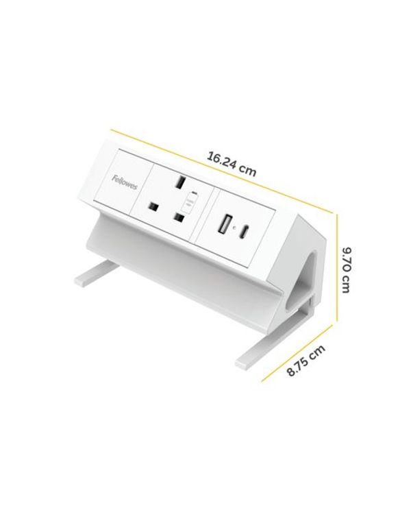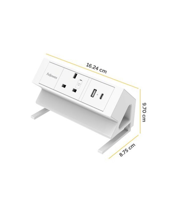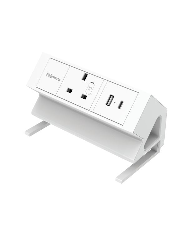 Fellowes Power Desk Type G UK/IE 1 Socket 1 USB-A + 1 USB-C Port White 100137171