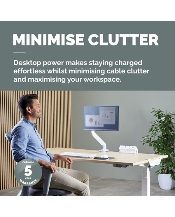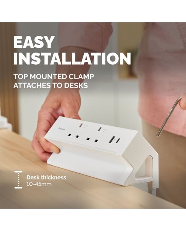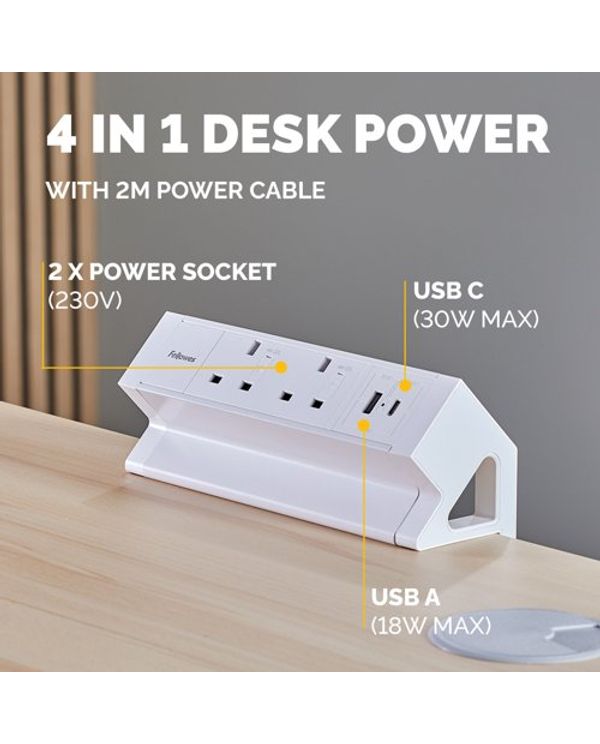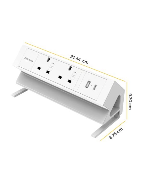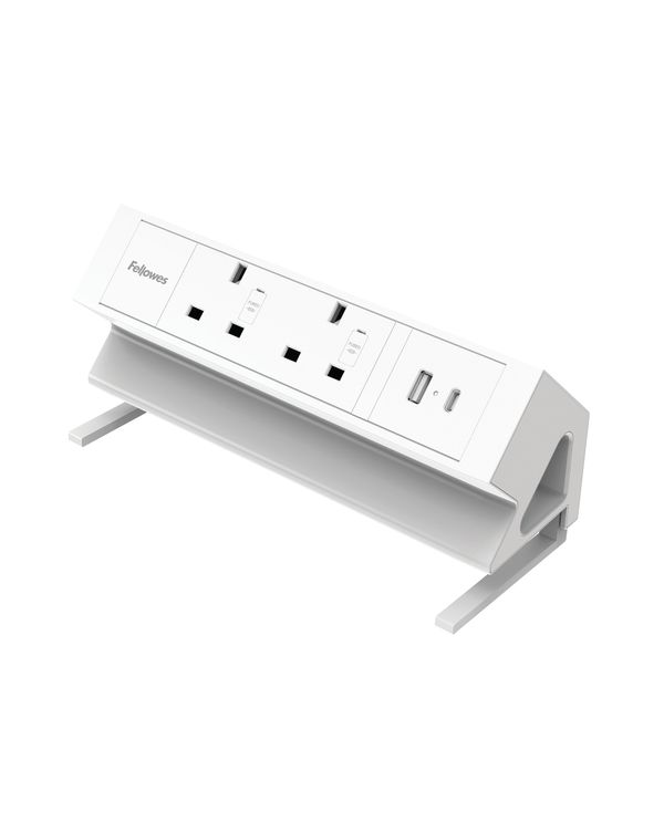 Fellowes Power Desk 2 Type G UK/IE 2 Sockets 1 USB-A + 1 USB-C Port White 100137181