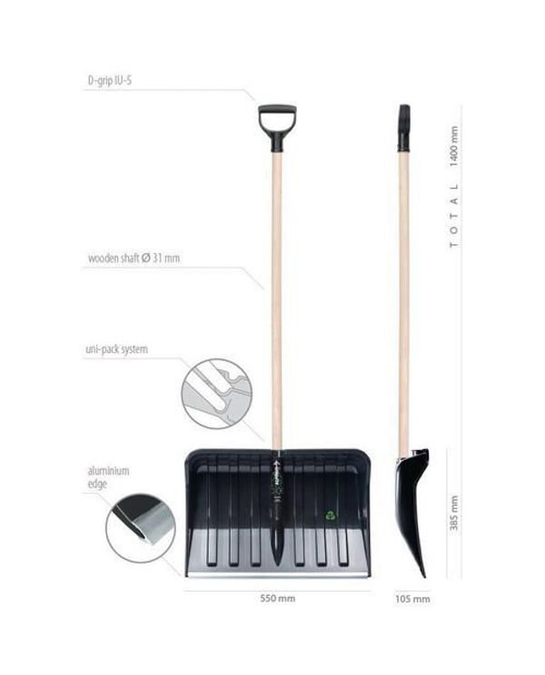 Alpinus Eco Snow Pusher Shovel 550x195x1400mm Black 426681