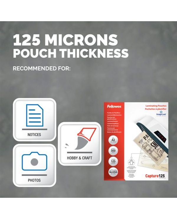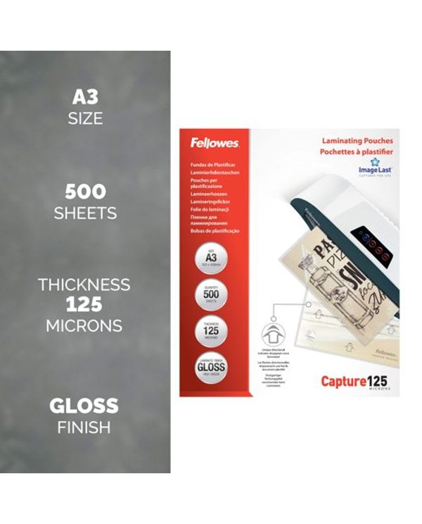 Fellowes Laminating Pouches 250 Micron Total Thickness Gloss A3 (Pack of 500) 100144250