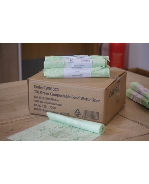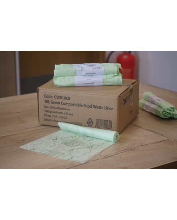 Compostable Food Waste Liners 10L 26x40 Rolls (Pack of 1040) CW010C0