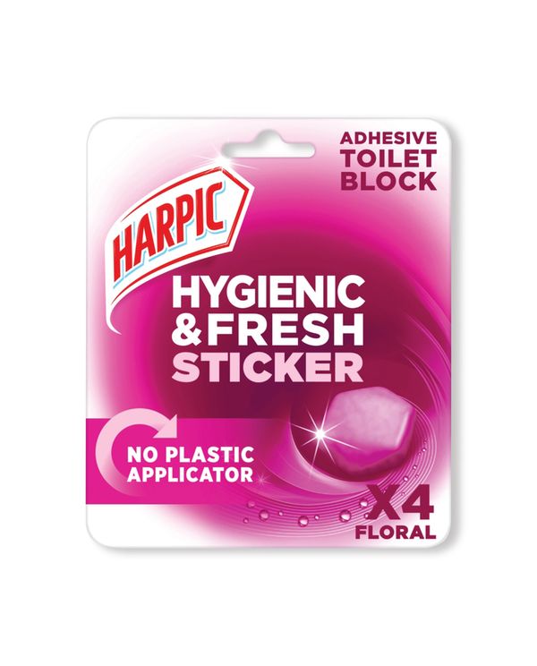 Harpic Hygienic Fresh Sticker Adhesive Toilet Block Floral x4 Tabs (Pack of 6) 3275290