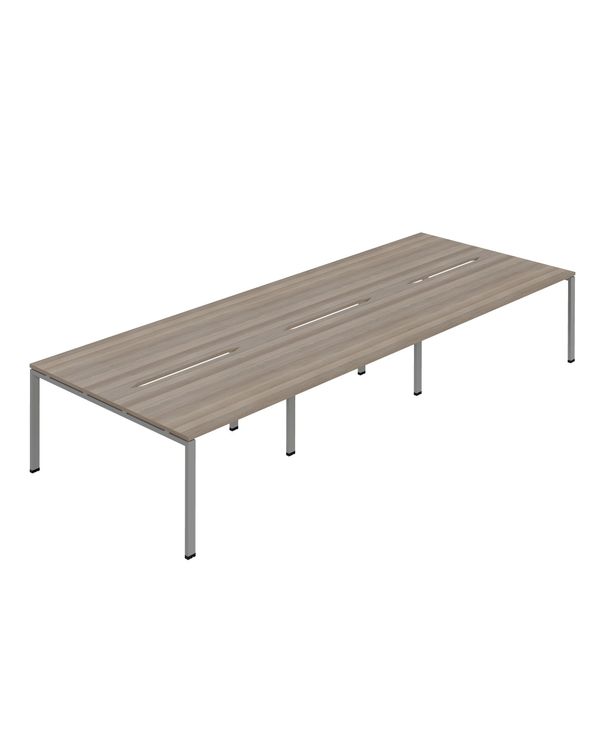 Jemini Six Person Back-to-Back Bench Desk 1200x800mm Grey Oak/Silver (Set of 3) KF800540