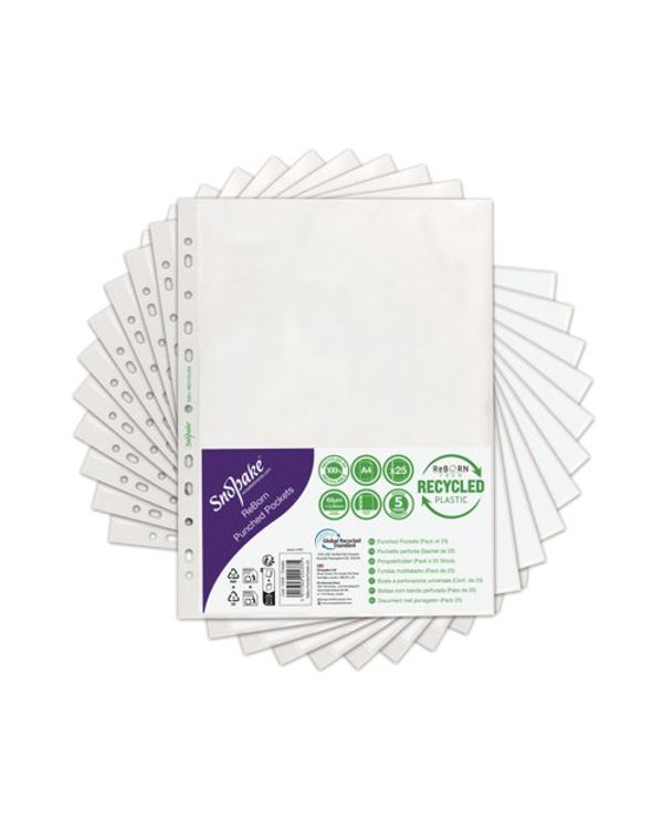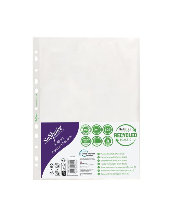 Snopake Reborn Punched Pockets A4 Polypropylene Clear (Pack of 25) 15938