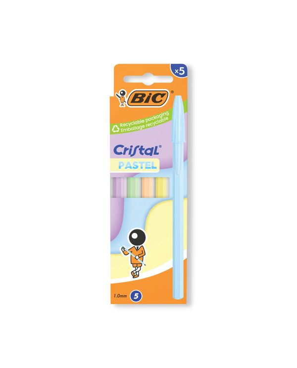 Bic Cristal Ball Pen Assorted Pastel Barrel Blue Ink (Pack of 5) 302561