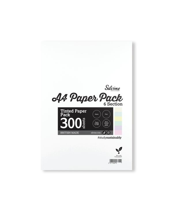Silvine Tinted Paper SEN/Dyslexia 300 Sheets 6 Colours Plain A4 (Pack of 5) TINA4MIXP