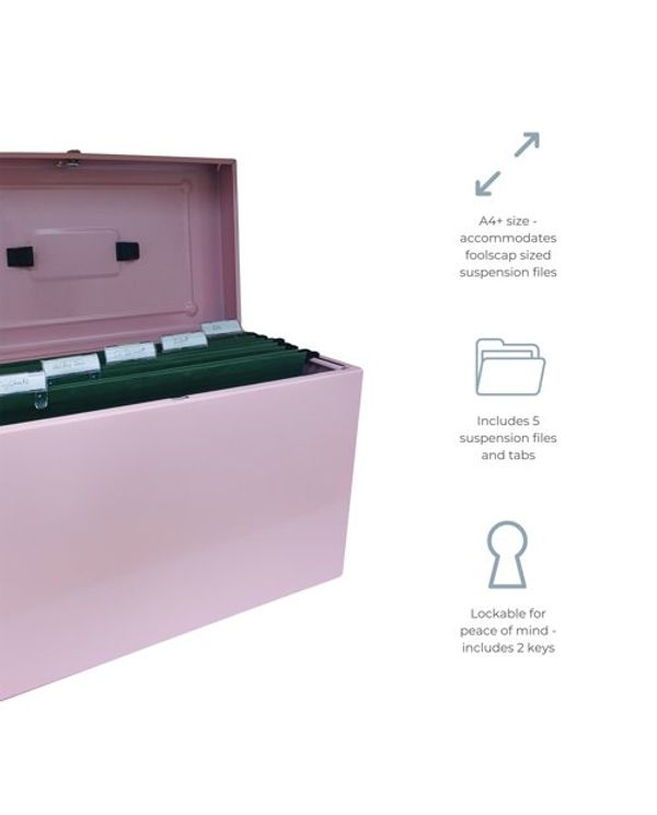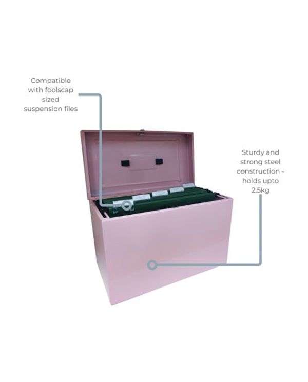 Cathedral File Box with 5 Suspension Files Foolscap Pastel Pink FPHOPP
