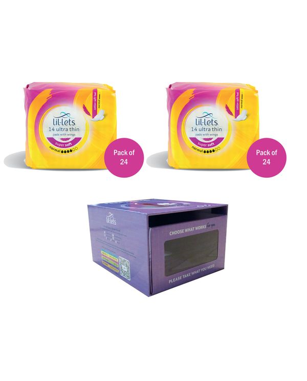 Lil-Lets Supersoft Sanitary Pads Normal x14 Pack of 24 Buy 2 Get FOC Dispenser