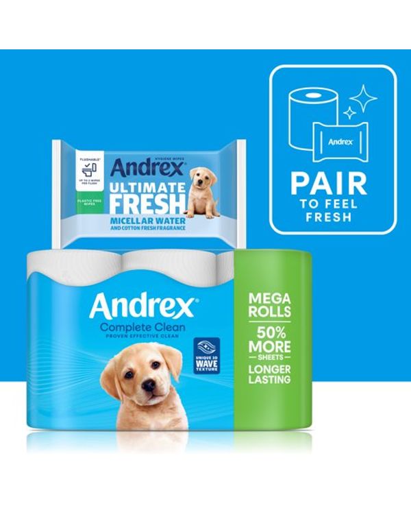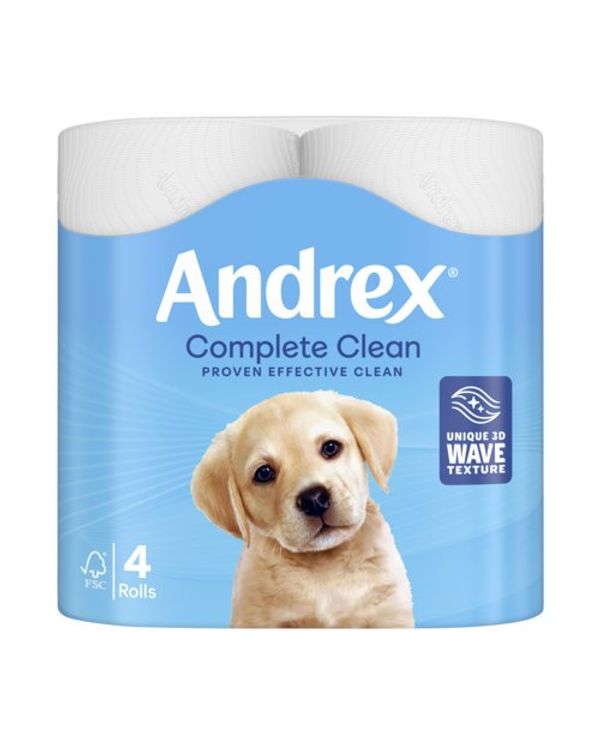 Andrex Complete Clean Toilet Tissue Standard 4x6 Rolls White (Pack of 24) 4480125