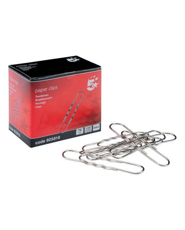 5 Star Office Paperclips Wavy Giant Length 76mm (Pack of 100)