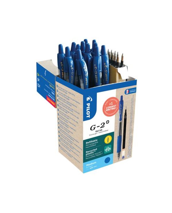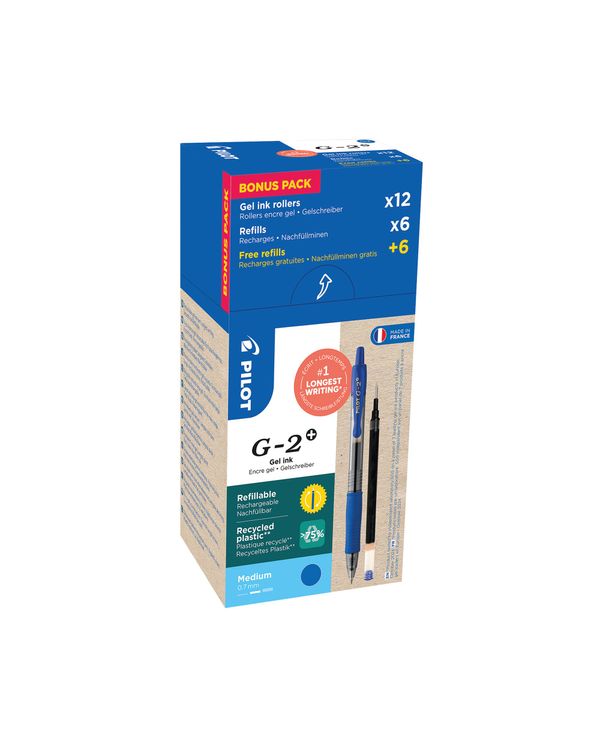 Pilot G-2 Plus Begreen Greenpack Gel Ink Rollerball Medium Blue with 6 Refills (Pack of 12) WLT55618
