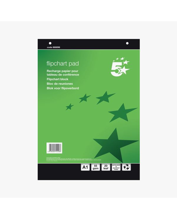 5 Star Recycled Flipchart Pad 55gsm 20 Sheets A1 (Pack of 5) FS668896