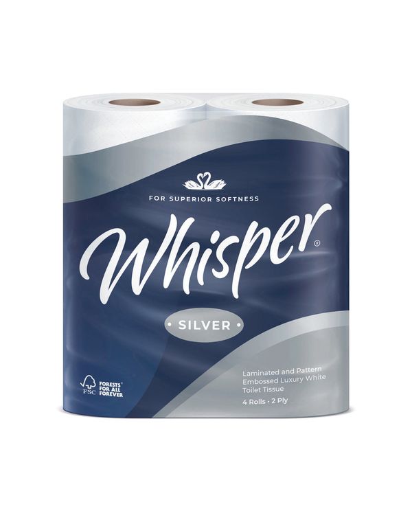 Whisper Silver Toilet Roll 2-Ply 210 Sheets Per Roll 4x10 (Pack of 40) TLSILVER
