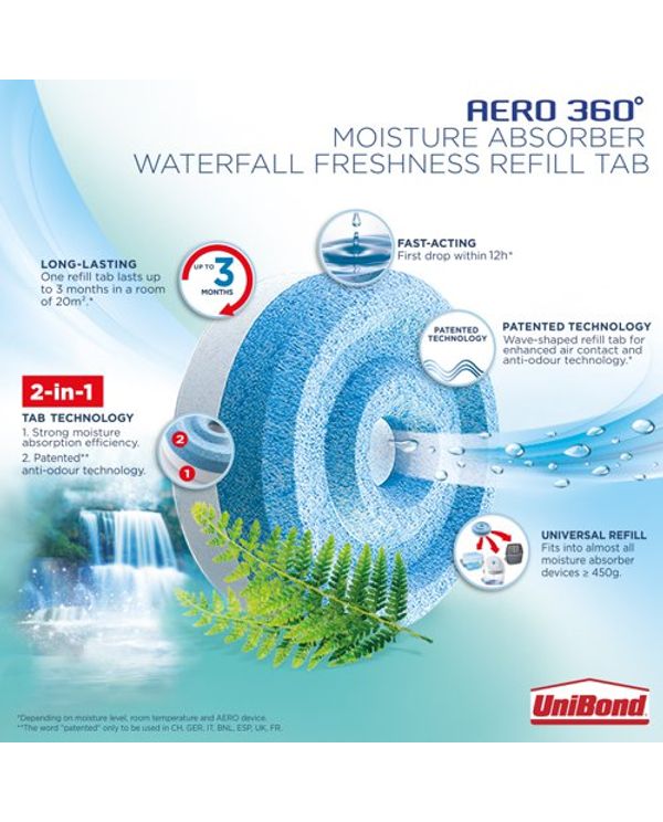 Unibond Aero 360 Moisture Absorber Refill Waterfall Freshness (Pack of 2) 2631290
